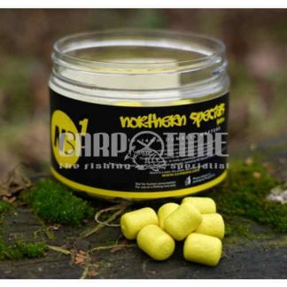 Wafters NS1 di colore giallo, realizzati con la miscela di aromi e agrumi Nortehrn Special. Le wafters sono perfette sia se utilizzate come inneschi singoli, sia multipli o quando vengono utilizzati come inneschi sopra le esche alimentari