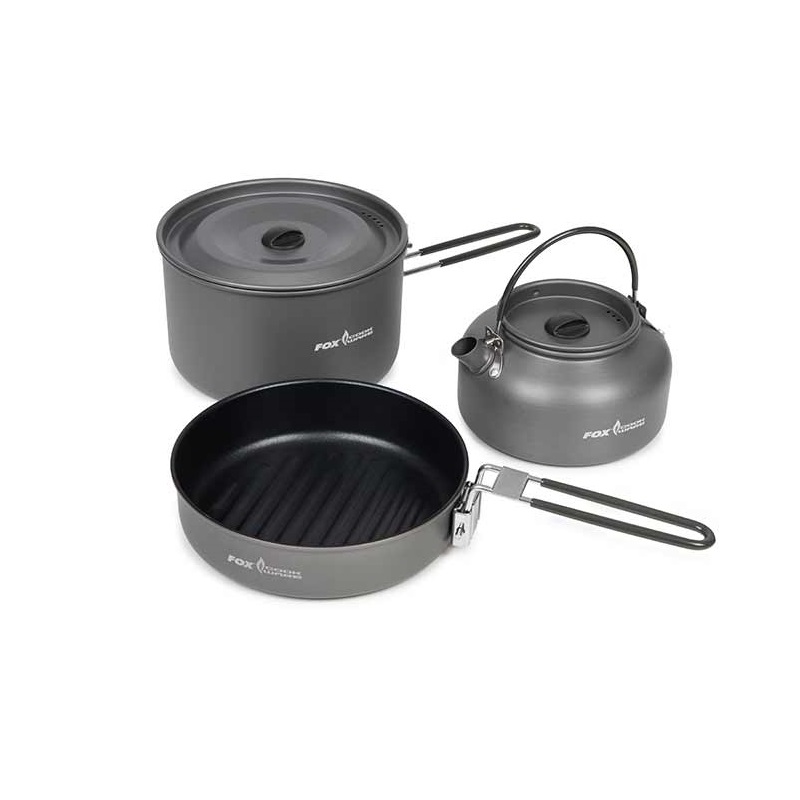 La casseruola si trova all’interno della padella e il bollitore all’interno della casseruola, per una soluzione compatta,fornito con una borsa per il trasporto in rete con cordino.