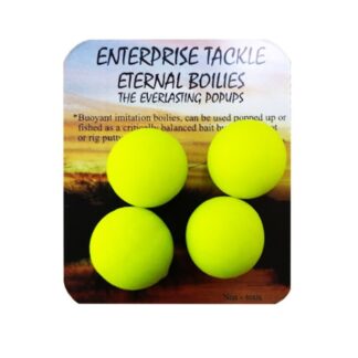 Le boilies artificiali sono state progettate per offrire al pescatore moderno la massima flessibilità nella creazione di terminali per ingannare i pesci più diffidenti. La presenza di un foro su un lato permette di aggiungere peso per creare un’esca bilanciata o affondante. In alternativa, può essere riempita con una sostanza assorbente imbevuta di un aroma concentrato a scelta del pescatore. Le boilies Eternal possono essere utilizzate efficacemente da sole, oppure in combinazione con boilies vere per creare il popolare terminale “Snowman”. La loro galleggiabilità rimane invariata anche dopo un uso prolungato e sono resistenti all’attacco di specie indesiderate, inclusi i gamberi di fiume.