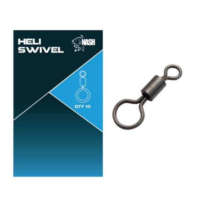 Girella con anelino allargato ad alta resistenza ed anti-riflesso per consentire ai terminali di girare liberamente nei tubicini, leader e leadcore se si utilizza Helicopter rig o Chod rig. Le Helicopter Swivels scivolano facilmente sopra nodi e cappi dei leader per una massima sicurezza del rig. 10 per confezione.
