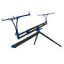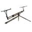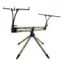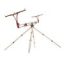 E’ molto curato anche esteticamente grazie all’alluminio anodizzato, alleggerito di quasi tre kg rispetto al fratello maggiore e rifinito lungo l’intera struttura, decorato inoltre da un’incisione fatta di fresa su entrambi i supporti-griglia. Le telescopie di gambe e corpo centrale offrono movimenti fluidi grazie a pistoncini interni in pa6 che garantiscono una regolazione ad hoc per ogni spot. Le buzzer bar indipendenti da 3 o 4 canne permettono il comodo alloggio di ogni tipo di mulinello con un generoso spazio operativo tra l’uno e l’altro (disponibili anche panoramiche). Completamente richiudibile senza la necessità di staccare nessun componente può essere alloggiato comodamente nella borsa da trasporto in dotazione