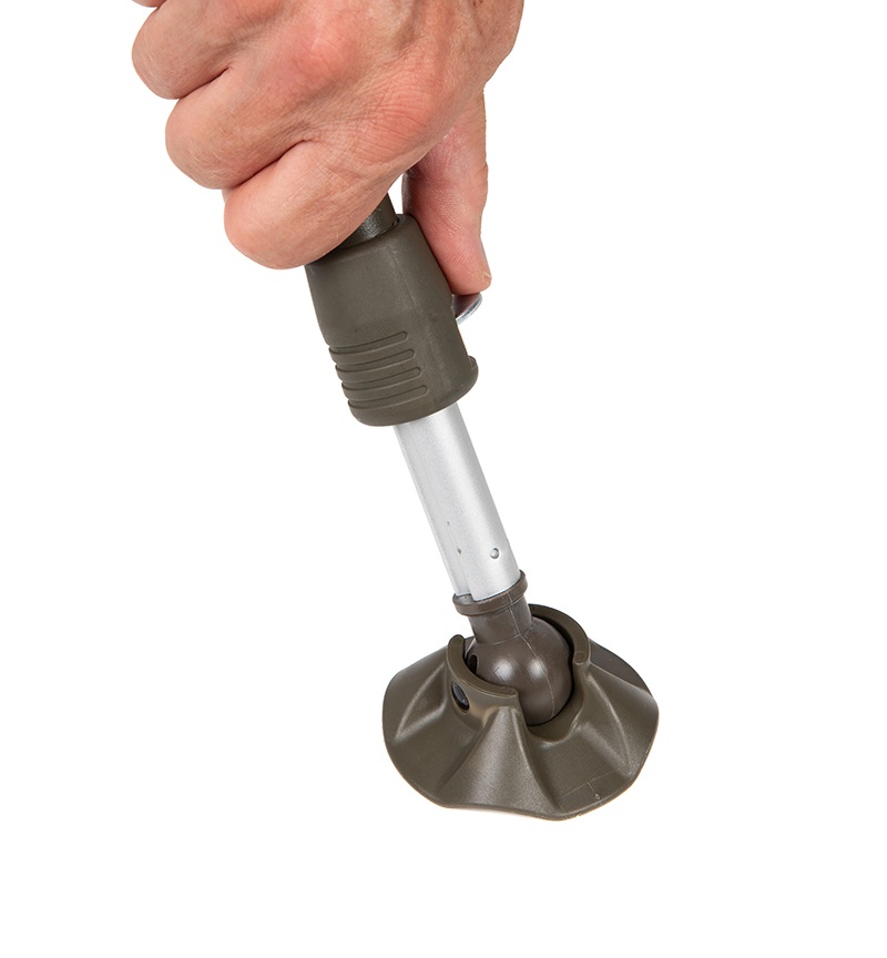 Nuova versione della sedia Eos con schienale reclinabile, combinazione di colorazione kaki e kaki scuro. Comodi braccioli, rivestimento imbottito, facilmente ripiegabile. Tutte e quattro le gambe sono completamente regolabili e dotate di piedini antifango basculanti su tutte le gambe.