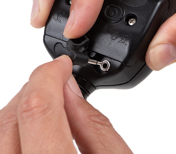 L’esclusivo cappuccio rientrante è rimovibile e consente di allineare perfettamente la clip per il filo e i loghi Fox, pesa 10 g e viene fornito con un peso rimovibile di 14 g. Il collegamento al segnalatore acustico avviene tramite un connettore jack da 2,5 mm fissato all’hockey stick; è compatibile con la maggior parte dei segnalatori dotati di presa da 2,5 mm.